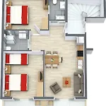 Lägenheten har mathörna, skrivbord och soffa för att koppla av efter en upptagen dag. Denna lägenhet erbjuder boende för upp till 5 gäster. I denna lägenhet finns dusch, hårtork och badlakan.